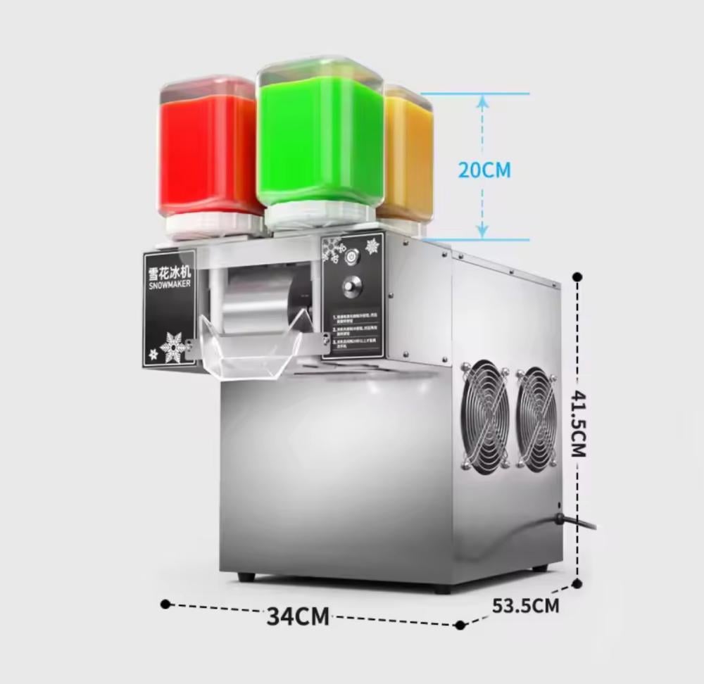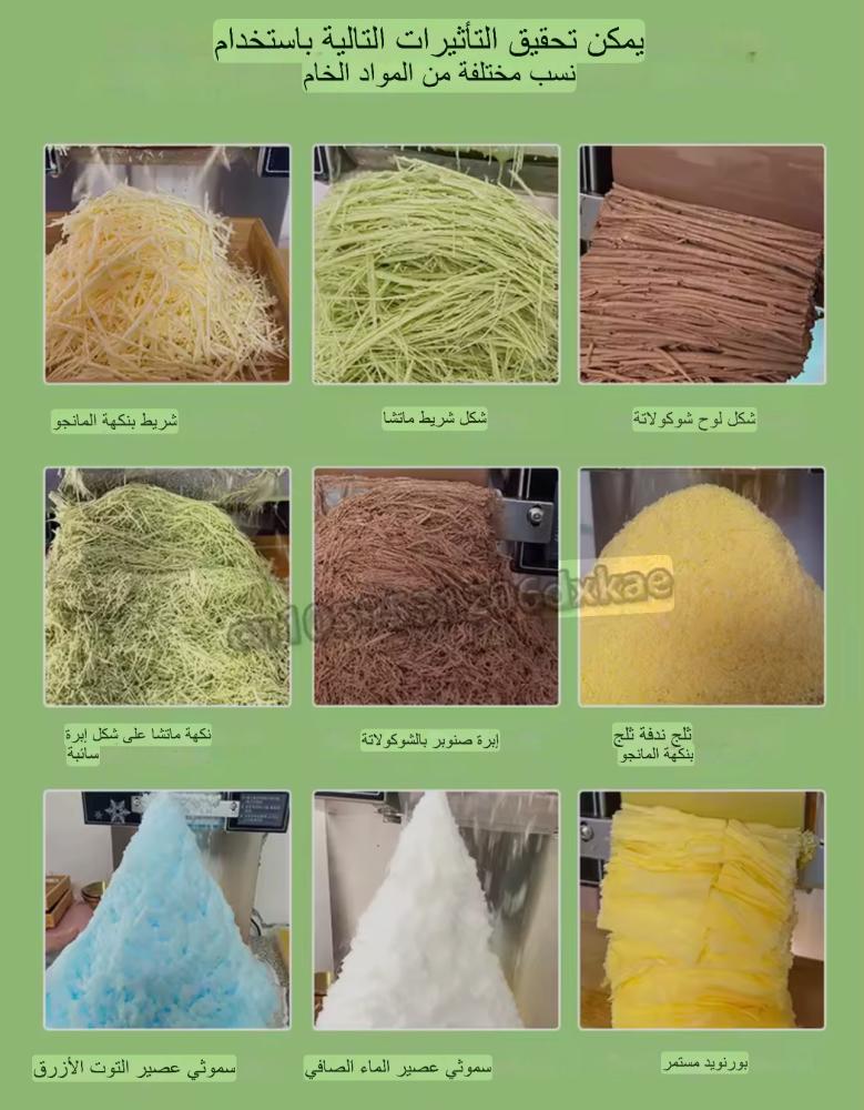 تصنع ثلج ناعم وملون بنكهات متنوعة، مثالي للمقاهي، الفود ترك، الأكشاك، تأجير الحفلات وحتى تنسيق المناسبات و تعادل سيارة الايسكريم.